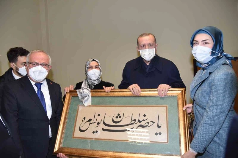 Cumhurbaşkanı Erdoğan, Konya-Karaman Hızlı Tren Hattı’nın yanı sıra 70 farklı projenin açılışını yapmak üzere Karaman’a geldi. Erdoğan, açılış töreninin ardından Karamanoğlu Mehmetbey Üniversitesine gelerek 15 Temmuz Konferans Salonunda düzenlenen Karaman İl Danışma Toplantısı’na katıldı. Toplantı sonrasında KMÜ Rektörü Prof. Dr. Namık Ak ile görüşen Cumhurbaşkanı Erdoğan, üniversitenin gelişimi ve gelecek döneme ilişkin projeleri hakkında Rektör Namık Ak’tan bilgi aldı. Rektör Namık Ak görüşmede Cumhurbaşkanı Erdoğan’a, Hattat Muhammed Naddah’ın yaptığı ‘Ya Hazreti Sultan Yunus Emre’ yazılı eseri takdim etti.