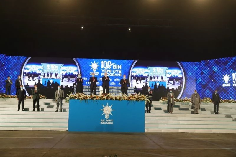 AK Parti İstanbul yeni üye katılım programında konuşan Cumhurbaşkanı Recep Tayyip Erdoğan, “Esasen bu programın 100 bin yeni üyemizin tamamının katılımıyla yapmayı istiyordum. Ancak salgın şartları sebebiyle bu şekilde sınırlı toplantıyla yapmak durumunda kaldık. Hedefimiz aslında İstanbul’un en büyük stadyumlarından birinde bu programı yapmaktı. Fakat salgın bunu ne yazık ki engelledi. Salgının engellemesi yürüyüşümüzü durdurmaz. Şu anda bu meydanda hamdolsun bu katılımla, bu coşkulu katılımla adımı attık, yolumuza devam ediyoruz. Gönüller bir olduktan sonra fiziki mesafelerin öneminin kalmadığını inanıyoruz. İstanbul teşkilatımızın 100 bin yeni üyemize büyük AK Parti ailesine hoş geldiniz diyorum. Yeni üyelerin partimize katılmasında emeği geçen tüm teşkilat mensuplarımızı tebrik ediyorum. Üye sayımız artıyor ailemiz büyüyor sloganıyla yürüttüğümüz bu çalışmanın bereketli bir şekilde neticelendiğini görüyoruz” dedi.