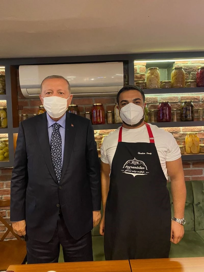 Cumhurbaşkanı Recep Tayyip Erdoğan, Vahdettin Köşkü’ndeki mesaisinin ardından Çengelköy’de söz verdiği bir restorana uğradı. Burada çay içen Cumhurbaşkanı Erdoğan, vatandaşlarla da sohbet edip çocuklara da oyuncak dağıttı. Cumhurbaşkanı Erdoğan daha sonra Kısıklı’da bulunan konutuna geçti. Cumhurbaşkanı’nın ziyarette bulunduğu restoran sahibi İbrahim Deniz, “Daha önce geleceğini beklemiyordum. Beş, altı aydır her buradan geçtiğinde ona bir şeyler ikram ediyordum, lahmacun, Ramazan pidesi, ondan sonra beyran çorbası çıkarttım ona. Ondan sonra o da zaten bana pandemi döneminde söz vermişti. Bir gün geleceğim restoranda bir çay içeceğim diye. Bu sefer yine geçince ona Karadeniz pidesi çıkarttım. Sonra beni gördü, tanıdı. Sana dedi ‘çay sözü vermiştim değil mi’ dedi, evet başkanım, dedim. O zaman bir çay içelim, dedi. Ondan sonra restoranımıza geldi, oturdu. Yemek yediği için, yemek ikram edemedim. Ama bir daha ki geldiğimde beyran çorbanı içeceğim, dedi. Burada çay içti. Çay içerken bana nasıl geçti pandemi dönemi, nasıl atlattınız, falan gibi sorular sordu. Ben de sizin yaptığınız yardımlarla işte sizin desteklerinizle çok iyi bir şekilde pandemiyi atlattık. İş yerimizi paket servisiyle çalıştırdık. Zaten biz Cumhurbaşkanı’nı çok seviyoruz. Burada olmasından çok memnunduk. İnşallah yine böyle bir günde tekrardan restoranıma gelir” dedi.
