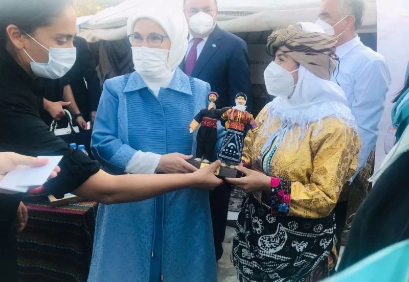 Adıyaman Belediyesi Kadın ve Gençlik Merkezi kursiyerleri ile usta öğreticileri tarafından hazırlanan Besi bebekten bakır işlemeli tablolara, yemeniden el oyası yazmalara kadar birçok alanda el emeği göz nuru ürünleri davetlilere sundu. Adıyaman otağını ziyaret eden isimler arasında yer alan Cumhurbaşkanı Recep Tayyip Erdoğan’ın eşi Emine Erdoğan’da ürünleri tek tek inceleyip, çiğköftenin tadına baktı. Adıyaman Belediyesi yetkilileri, Cumhurbaşkanı Erdoğan ile eşi Emine Erdoğan hanımefendiye el yapımı yemeni hediye etti.