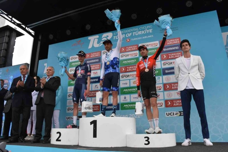 Dereceye giren bisikletçi Patrick Bevin’e ödülü Tekirdağ Valisi Aziz Yıldırım verdi.