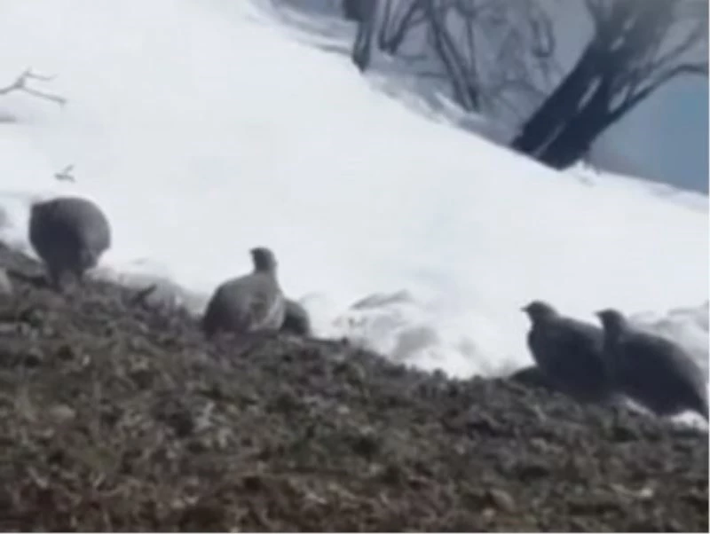 Elazığ’da dağ keklikleri sürü halinde yiyecek ararken görüntülendi.