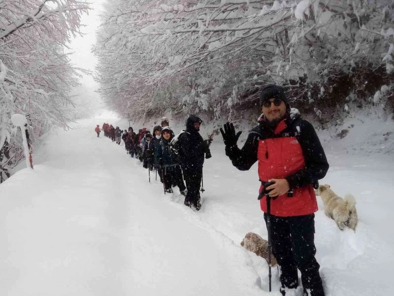 Sakarya’nın Kocaali ilçesinde 30 kişilik doğa tutkunu, bin rakımlı Çamdağı bölgesinde yaklaşık 12 kilometrelik kar yürüyüşü gerçekleştirdi.