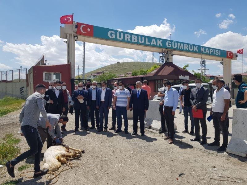 Doğu Anadolu İhracatçılar Birliği yönetim kurulu üyeleri korona virüs tedbirleri kapsamında kapatılan ve dün yeniden açılan Gürbulak Sınır Kapısı’nda kurban kesip dua etti.