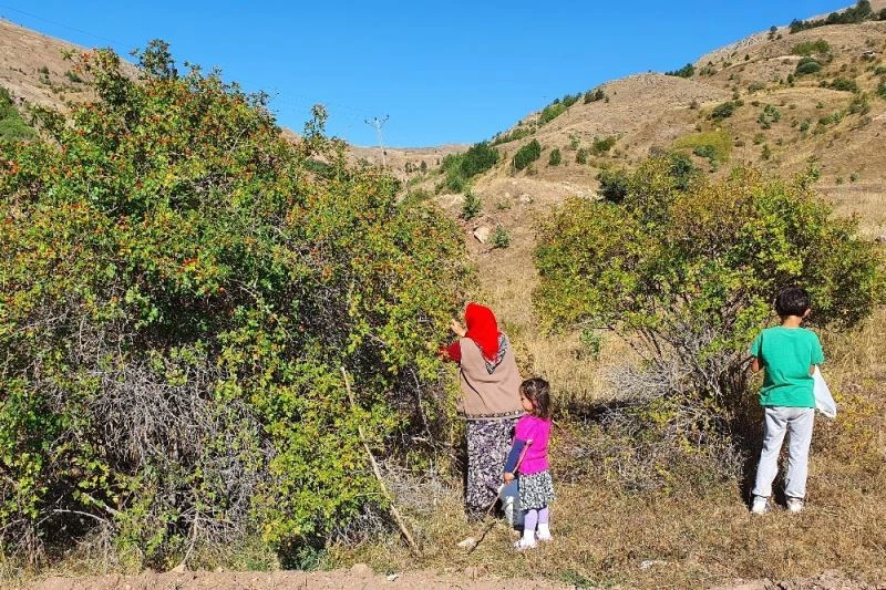 Eşiyle birlikte kırsalda kuşburnu toplayan Ergin, kuşburnu toplamanın oldukça zor olduğunu ve incelikleri olduğunu belirterek, “İlmini bilmezseniz zor olur. Gelberi dediğimiz çubukla dalları kendimize çekip öyle topluyoruz. Yoksa dikenleri vücudunuzu yaralıyor. Ben Bayburt’luyum bilmezdim bu işleri. Buraya gelin gelince öğrendim” diye konuştu.