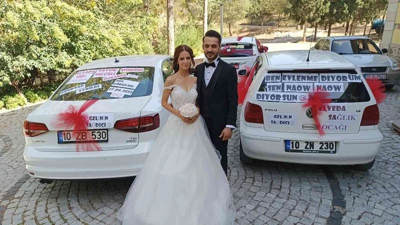 Gelinin arkadaşları kendi arabalarını süsleyerek konvoya eşlik etti, düğün töreninde ise cama yazdıklarını hediye ettiler.