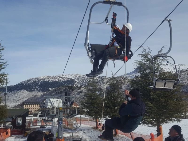 Isparta’da bulunan Davraz Kayak Merkezi’nde olası olumsuz durumlara karşı hazır olmak amacıyla merkez çalışanlarına yüksekte çalışma ve kurtarma eğitimi verildi.