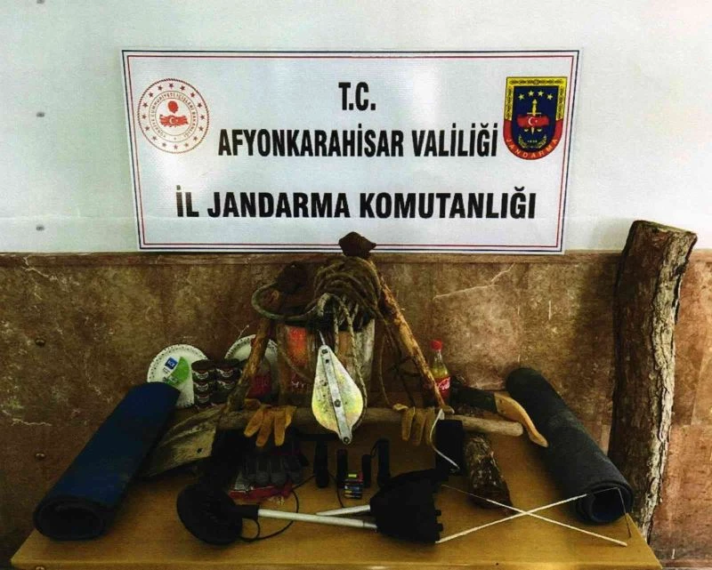 Ekipler tarafından bölgede yapılan incelemede ayrıca şahısların define bulmak için 11 metre derinliğinde çukur kazdıkları da tespit edildi. Gözaltına alınan şüpheli şahıslara ayrıca Afyonkarahisar Orman İşletme Müdürlüğü ekipleri tarafından ‘izinsiz kuru dal odunu toplamak’ suçundan bin 912 TL para cezası kesildi.