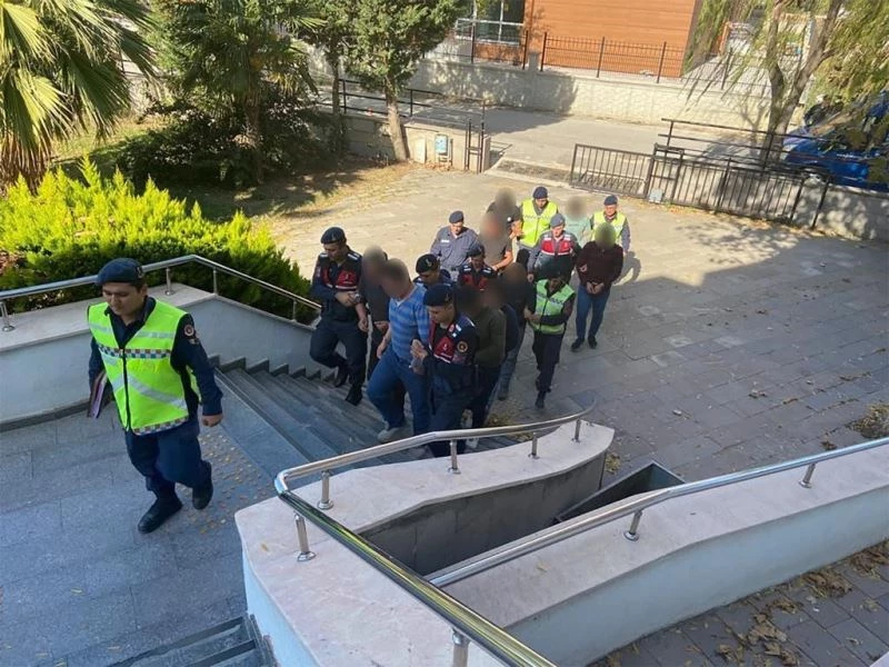 Alınan bilgiye göre, Derbent Mahallesi’nde koruma alanı statüsünde bulunan Papazkayası mevkiinde jandarma ekipleri yaptıkları operasyonda, E.K. (39), K.D. (51), B.K. (21), S.E. (28), K.İ. (31), H.Z. (24), H.Z. (20), A.Z. (23) ve A.Z. (25) isimli şahısları kazı yaptıkları esnada suçüstü yakaladı. Define arayan şüphelilerin yanında bulunan 1 adet jeneratör, 1 adet hilti, 1 adet calaska, 2 adet kazma, 3 adet kürek, 2 metre elektrik kablosu, 1 adet balyoz, 3 adet manivela çubuğu, 2 adet çekice ele konuldu. Şüphelilerden E.K. (39) ve K.D. (51) isimli şahıslar çıkarıldığı mahkemece tutuklanarak Bursa E Tipi Kapalı Ceza İnfaz Kurumuna sevk edilirken, diğer 7 şüpheli ise adli kontrol şartıyla serbest bırakıldı.