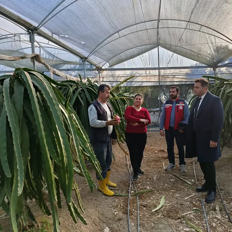 HATAY - Defne İlçe Tarım ve Orman Müdürü Burak Oktay, ejder meyvesi üretilen bir serayı ziyaret etti.