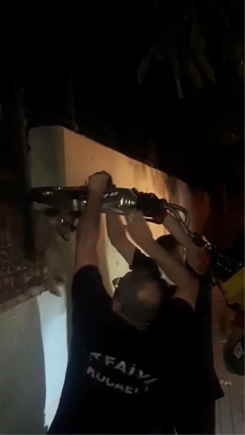 Demir parmaklıklara sıkışan köpeği itfaiye kurtardı
