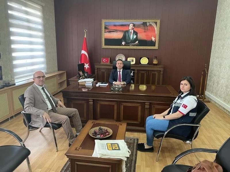 Çorum 112 Acil Çağrı Merkezi Müdürü Arif Demiral, Sungurlu Kaymakamı Fatih Görmüş’ü ziyaret etti.