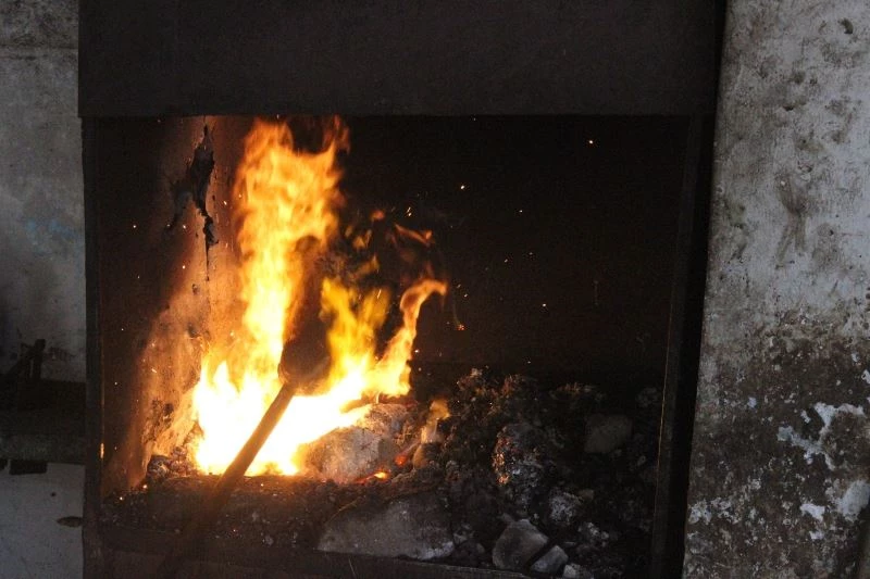 Kilis’te kurbanlarını kesen vatandaşlar, kurban kellesinin temizliği için demircilerin yolunu tutarak kurban kellerini üttürüyorlar. Demir işlemek için yakılan ateşler, bu kez kurbanlık hayvanların kellelerinin temizliği için kullanılıyor. Hayvan başına 30 TL alan demirci ustaları, hayvan kellelerini ateşte temizliyor.
