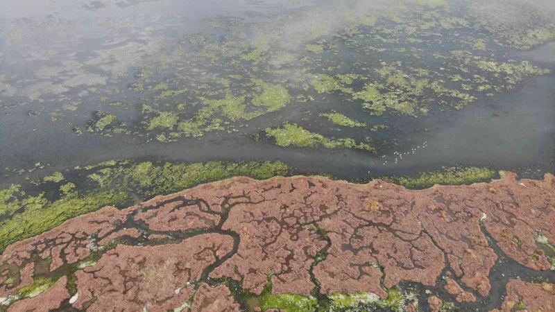 Deniz suyundaki azot ve fosfor miktarının artmasıyla meydana gelen deniz marulu, flamingolar başta olmak üzere birçok kuşun yaşadığı İnciraltı kıyılarındaki Çakalburnu Lagünü’nü yer yer örttü.