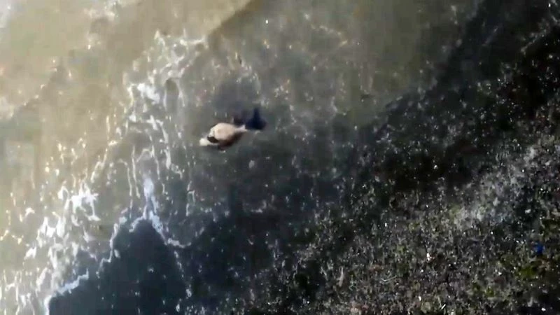 Deniz salyaları sebebiyle yavru yunus sahile vurdu