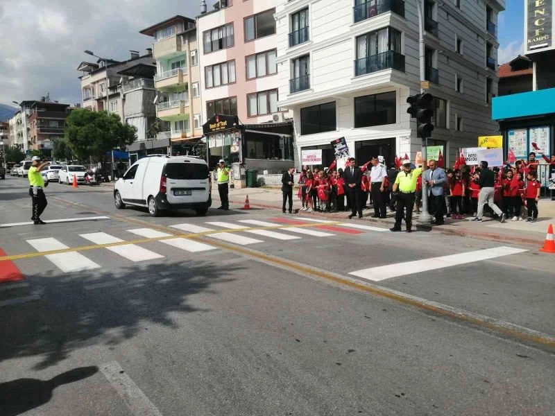 Denizli protokolü ve öğrenciler trafikte yaya önceliğine dikkat çekti