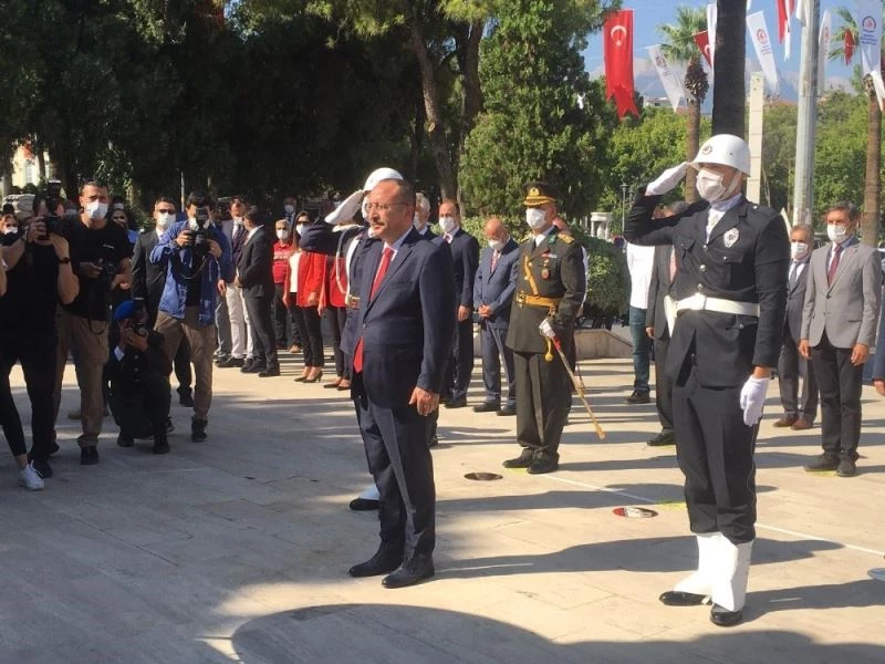 Program Valilik önünde Atatürk Anıtı’na çelenk sunma ile başladı. Saygı duruşu ve İstiklal Marşı okunmasının ardından günün anlam ve önemini belirten konuşma gerçekleştirildi. Valilik önünde yapılan ve korona virüs salgını tedbirlerinin alındığı törene Vali Ali Fuat Atik, 11’inci Komando Tugay ve Garnizon Komutanı Piyade Albay Cengiz Güven, Denizli Büyükşehir Belediye Başkanı Osman Zolan, Denizli Milletvekilleri ve beraberindeki protokol katıldı. Valilik, garnizon komutanlığı ve belediye başkanlığı çelenklerinin Atatürk Anıtı’na sunulmasının ardından saygı duruşunda bulunuldu, İstiklal Marşı okundu. İstiklal Marşı’nın okunmasının ardından günün anlam ve önemini belirten konuşma sonrası tören sona erdi.