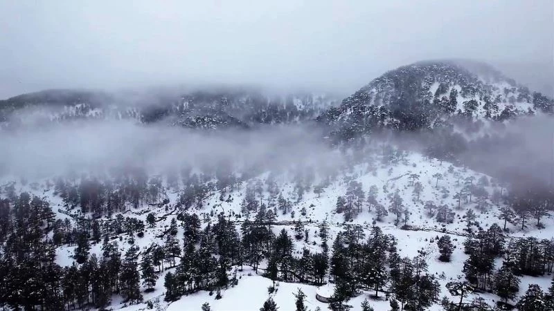 Denizli’nin rakım olarak en yüksek ilçelerinden biri olan Çameli ilçesinde yüksek kesimlerde kar yağışı, buzlanma ve aşırı soğuk kendisini hissettirmeye devam ediyor. Sibirya soğununun yaşandığı ilçede kar kalınlığının 30 santimetreye ulaştığı Karabayır Mahallesi’nde oluşan kartpostallık manzara, drone uçuran doğa tutkunları tarafından kayıt altına alındı.