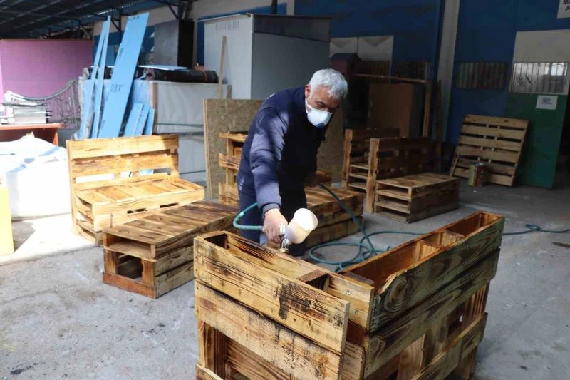 Kocaeli’de İzmit Belediyesi’ne bağlı ekipler, deprem bölgesinde kurulan Çadır Yaşam Alanları için masa ve sandalye imalatı yapıyor.