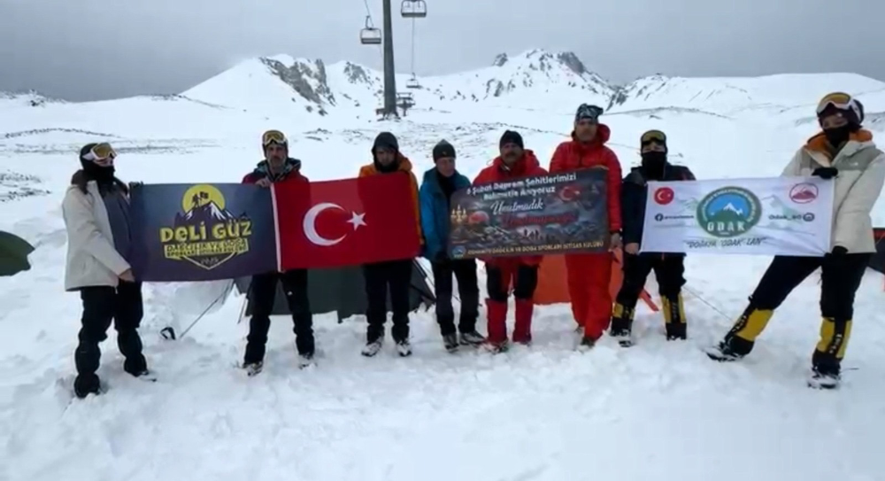 Erciyes Dağı’ndaki zirve tırmanışı faaliyetine Türkiye’nin farklı illerinden yaklaşık 180 dağcı, Osmaniye’den ise 10 depremzede dağcı katıldı. Faaliyetin sonunda katılımcılar, Türk bayrağı ile üzerinde “6 Şubat Deprem Şehitlerimizi Rahmetle Anıyoruz. Unutmadık, Unutmayacağız” yazılı pankart açarak anma gerçekleştirdi.