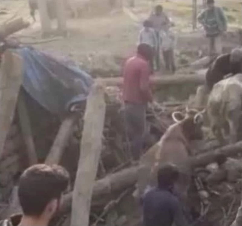 Depremde çöken ahırdaki hayvanları kurtarmak için seferber oldular