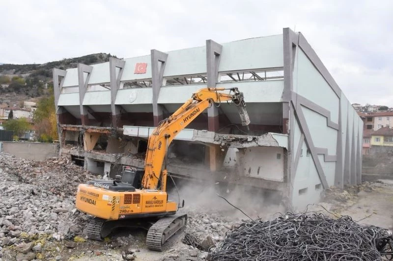 Depreme dayanıksız kapalı spor salonunda yıkım işlemi başlatıldı