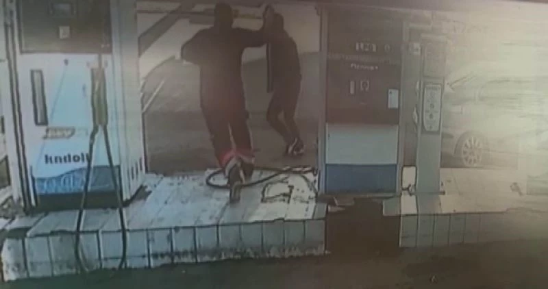 Benzin istasyonunda aracına yakıt almak isteyen bir vatandaş ile istasyon çalışanının, deprem anında bölgeden panikle uzaklaştığı görüldü. Depremin şiddeti nedeni ile pompa istasyonlarının da sallandığı kameralara yansıdı.