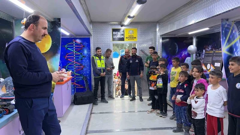 Depremzede çocuklar Konya Büyükşehir’in Bilim Tırında moral buluyor