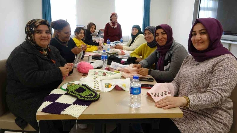Isparta’da konaklayan depremzede kadınlar el nakışı kursunda örgü örerek depremin izlerini silmeye çalışıyor.