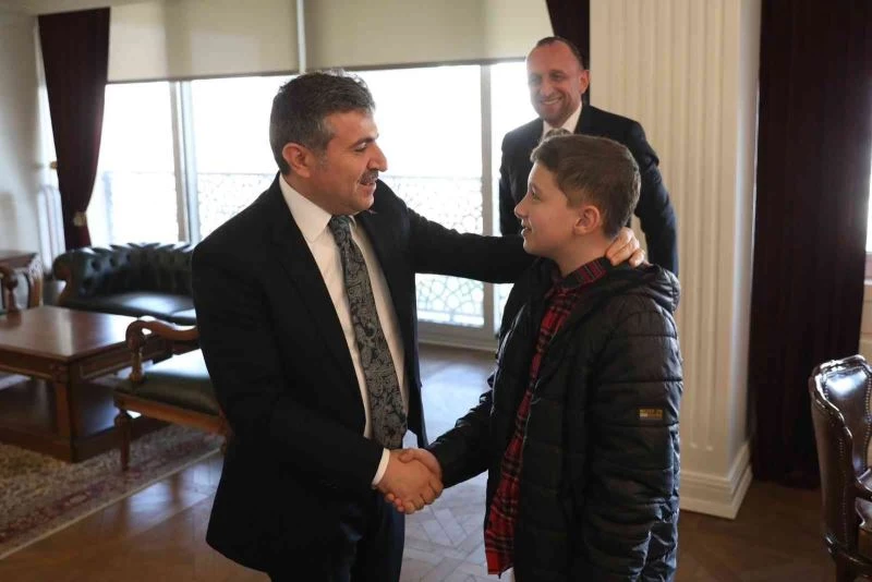 Düzce’de meydana gelen deprem sonrasında biriktirdiği harçlıklarını depremzede çocuklara gönderen 6. sınıf öğrencisi Muhammed Emir Ateştepe Düzce’ye gelerek Vali Cevdet Atay’ı ziyaret etti.