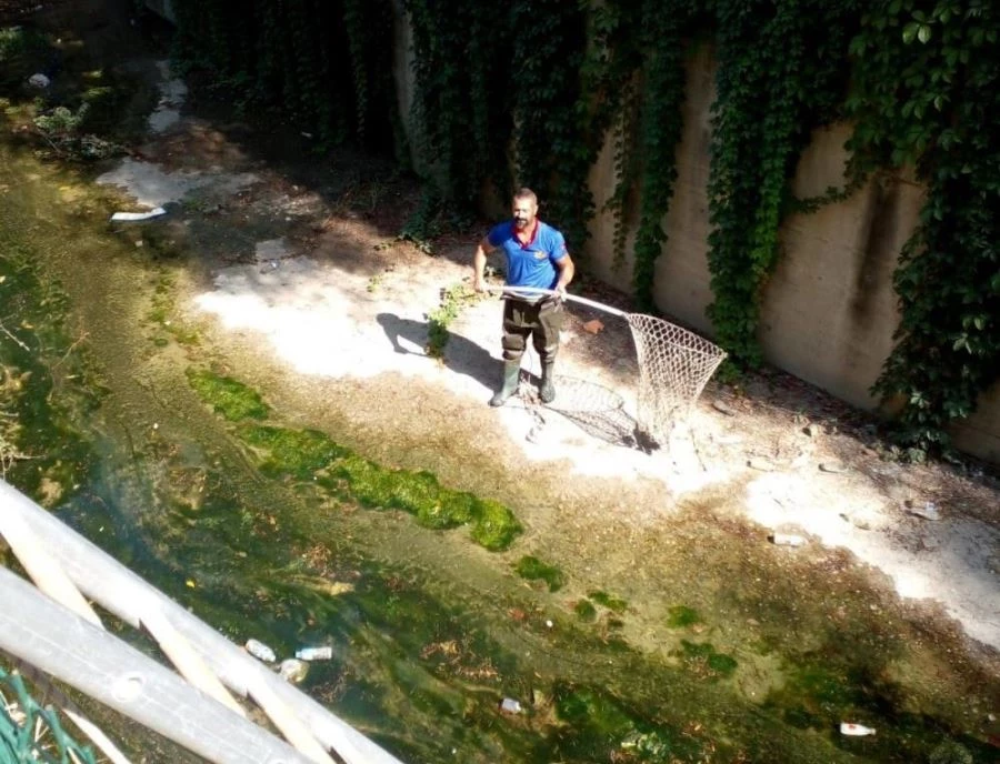 Osmaniye'nin Kadirli ilçesinde düştüğü derede mahsur kalan yavru kedi itfaiye ekiplerince kurtarıldı.