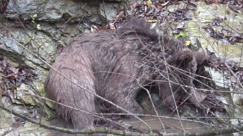 Deredeki ayı kurtarma operasyonundan nefes kesen görüntüler