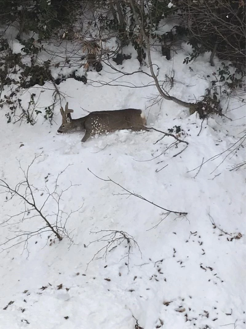 Kar kalınlığının beline kadar geldiğini ve derede kara saplanan karacaya yardım etmek için dereye indiğini söyleyen Treyler Operatörü İrfan Sürgit, “Kara saplanan karacayı boynuzlarından tutarak kurtardım” dedi. Kara saplanan karacanın saplandığı yerden çıkmaya çalıştığını ama başaramadığını görünce yardım etmeye karar verdiğini söyleyen Sürgit, “Kara saplanan karacaya dayanamadım ve dereye yanına güçlükle indim. Hiç karşı koymadı, boynuzlarından tutup zor olsa da kardan kurtardım. Dereye inerken çalılar elimizi ayağımızı yırtsa da verdiğimiz zahmetin önemi yok. Bu güzel hayvan kurtuldu ya bu bize yeter” diye konuştu.