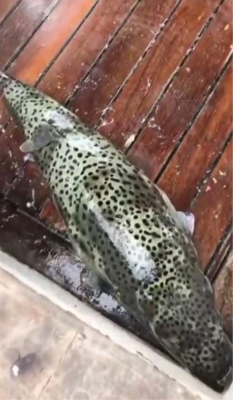 Bir başka teknedeki balıkçıların oltasına ise camgöz cinsi köpek balığı takıldı. Balıkçılar ellerine aldığı köpek balığı yavrusunu denize bıraktı.