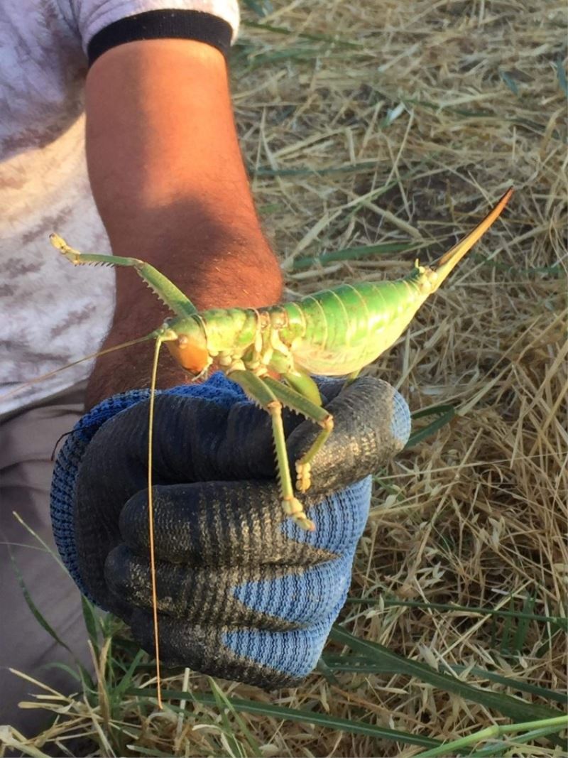 Diyarbakır’ın Çınar ilçesinde arazide dev çekirge görüldü. Yaklaşık 25 santimetre uzunluğundaki çekirgeyi görenler, gözlerine inanamadı.
