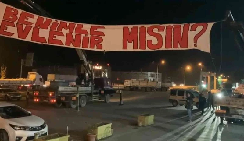 Bursa’nın İnegöl ilçesinde yaşayan gencin, 4 yıldır flört ettiği sevgilisine hazırladığı dev pankartlı evlenme teklifi sürprizi görenleri şaşırttı. Vinçler yardımıyla 10 metre uzunluğundaki "Benimle evlenir misin?" yazılı dev pankart, sosyal medyada büyük beğeni topladı.