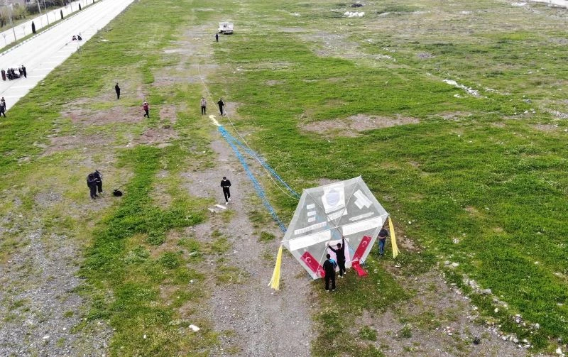Pes etmediklerini tekrardan uçurmaya çalışacaklarını ifade eden Kadir Karayiğit, “Osmaniye’de ger sene düzenlenen uçurtma etkinliğinde bizim de bir etkinliğimiz oldu. 6 metreye 6 metre ortalama 36 metrekare boyunda dev bir uçurtma yaptık. Sağlıkla ilgili maske, mesafe, hijyen ve korona gibi virüsle ilgili notları da üzerine yazdık. Sağlık personellerimizi de yürekten tebrik ediyoruz. Allah onlarında yokluklarını göstermesin. Profil borulardan yaptık. 7 metre uzunluğunda 6 metre genişliğinde naylon kullandık. Kuyruğumuz 57 metre saçaklarımız ise 2 buçuk metreye denk geliyor. Emeği geçen herkeste burada, hepsini yürekten kutluyorum. Bugün normalde uçurmayı deneyecektik. Havanın acizliğine denk geldik. Rüzgâr olmadığı için bugün uçuramadık. Hafta içi uçurmayı deneyeceğiz” diye konuştu.