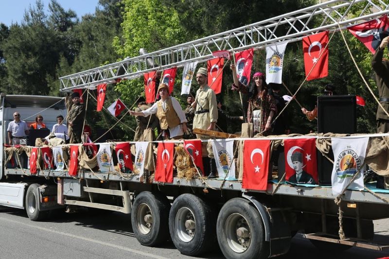 Atakum Belediyesi ekipleri tarafından dorse bölümü tiyatro sahnesine dönüştürülen Kuva-yı Milliye Tırı pencere ve balkonlardaki vatandaşlara bayram coşkusunu yaşattı.