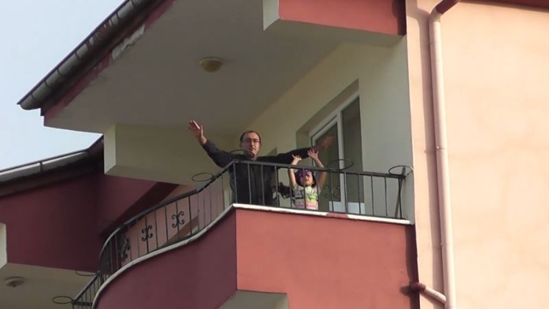 Develililer balkonlardan müziğe eşlik ederek spor yaptı