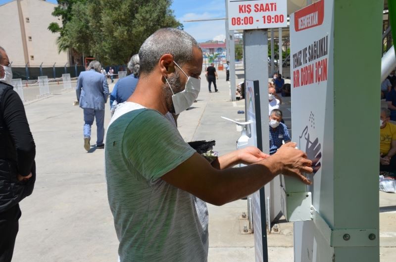 Namaza gelen cemaate Aydın Büyükşehir belediyesi ekiplerince maske dağıtılırken, Didim Belediyesi zabıta ekiplerince ateş ölçümü yapıldı. Dezenfekte aletinin de konulduğu giril kapısında seccadesi olanlara giriş izin verildi.