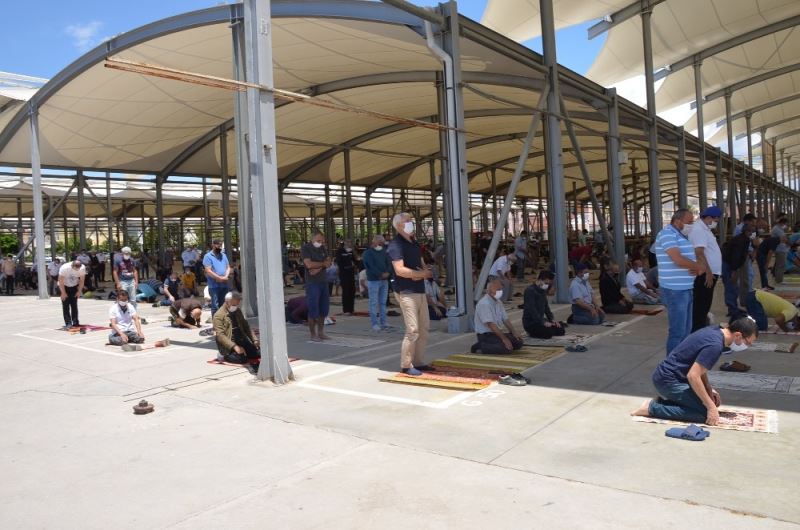 Camilerin yeniden ibadete açılmasının ardından, Aydın’ın Didim ilçesinde Cuma namazı açık pazaryerinde hijyen kurallarına riayet edilerek kılındı.