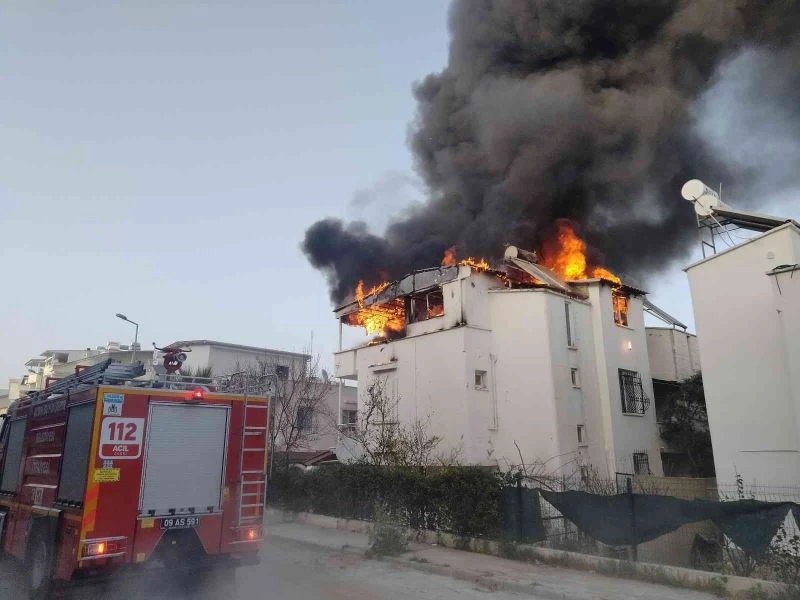 Didim’de iki katlı evin terasında çıkan yangın korkuttu