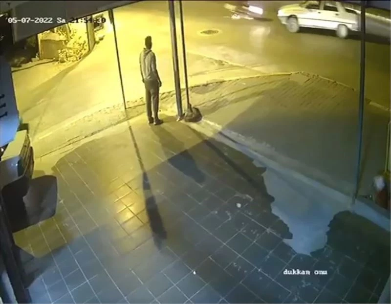 Edinilen bilgiye göre, kaza, Şükrü G. idaresindeki 10 plakalı otomobil ile Mehmet Akif Ersoy Caddesi üzerinde seyreden motosiklet sürücüsü Eren E. arasında yaşandı. Kameraların saniye saniye kaydettiği kazada otomobilin motosiklete çarpma anı yürekleri de ağza getirdi. Motosiklet sürücüsü Eren E. çarpışmanın şiddeti ile arabanın üstünden yere düşerken, olay yerine de çok sayıda polis ekibi ve sağlık ekibi sevk edildi. Eren E. kaldırıldığı hastanede tedavi altına alınırken, motosiklet sürücüsünün kask takmasının bir faciayı da önlediği görüldü.