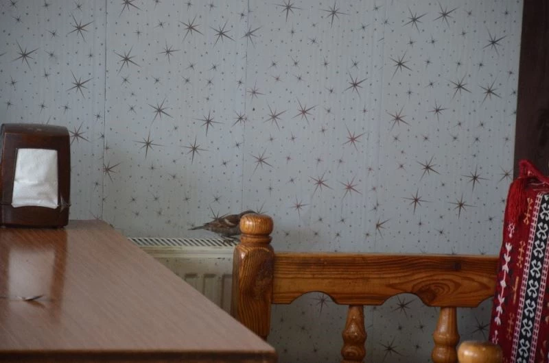 Şırnak’ta kar yağışı sonrası beyaza bürünen dağlarda yiyecek arayışına giren serçeler dinlenme tesisini mesken yaptı. Sıcak ortamı bulan serçeler dinlenme tesisinden dışarı çıkmıyor.