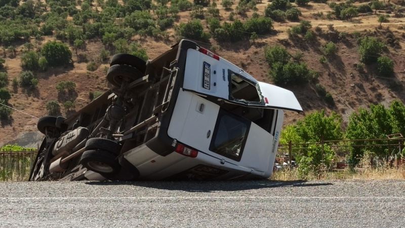 Direksiyon hakimiyeti kaybedilen minibüs şarampole yuvarlandı: 1’i ağır 12 yaralı