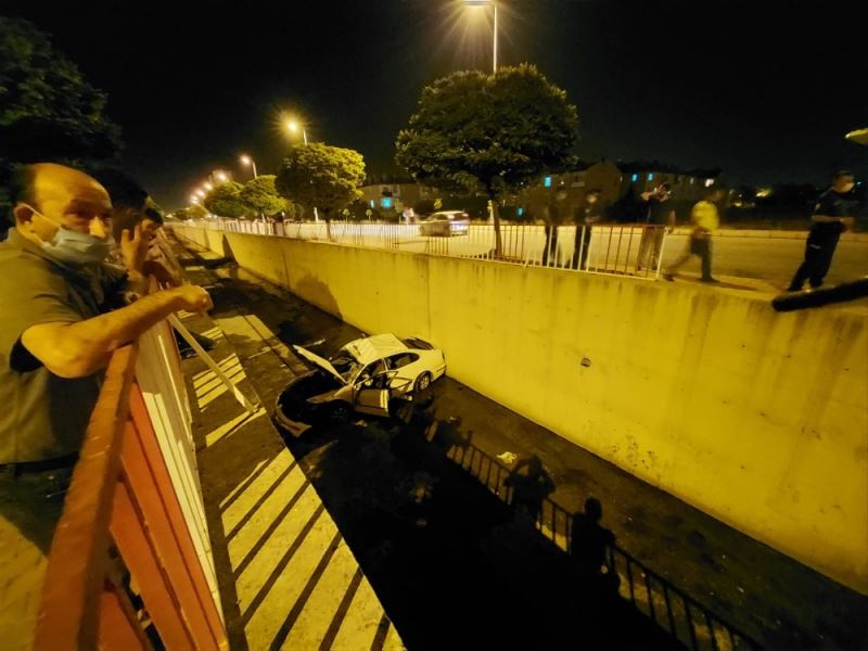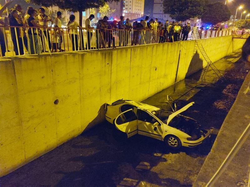 Direksiyon hakimiyeti kaybolan otomobil kanala düştü: 2 yaralı