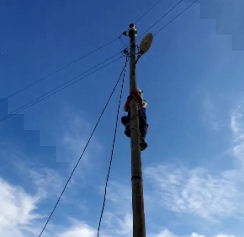 Sivas’ın Koyulhisar ilçesinde köpeklerden kaçarak elektrik direğinin tepesinde mahsur kalan kediyi ÇEDAŞ çalışanları kurtardı.