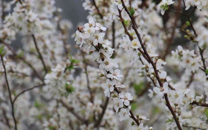 İlçede son günlerde bir gün yaz, bir gün kış havasının yaşandığına da dikkat çeken Keskin, "Bu durumdan bahçelerimiz istifade etti. Ağaçlarımız çiçek açtı, inşallah çok güzel bir hasadımız olacak. İçeriye tozlaşma için bal arısı bıraktık. Aldığımız arılar çiçek çok olunca yeterli gelmedi. Bunun üzerine arkadaşlarımızdan bir kovan bal arısı daha getirdik içeri koyduk, şu anda yetiyor. İlaç vermeden arı tozlaşmasıyla doğal olarak yetiştiriyoruz" diye konuştu.