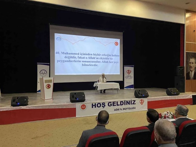 Diyanet İşleri Başkan Yardımcısı Dr. Burhan İşliyen, Mevlid-i Nebi Haftası nedeniyle Ağrı Kültür ve Kongre Merkezi’nde düzenlenen “Peygamberimiz ve Vefa Toplumu” konulu konferansa katılarak konuşma yaptı. Hz. Muhammed’i (s.a.v) anlamak için onun yaptıklarını yapmak gerektiğini söyleyen İşliyen, “Vefa göstermek peygamberin ahlakıyla ahlaklanmakla mümkündür. Çok şey söylenebilir. Ben az söylemiş olayım siz çok anlayın lütfen. Ama vefa göstermek hayatın bir sınav olduğunu, her halükarda nasıl edeceksek edip rabbimizin rızasını kazanmaktan başka çaremizin olmadığını anlamaktır” dedi.