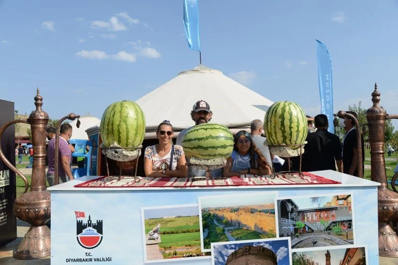 Diyarbakır karpuzunun büyüklüğü karşısında şaşkına dönen ziyaretçiler, hatıra fotoğrafı da çektirmeyi ihmal etmiyor. Büyükşehir Belediyesi, içinde Diyarbakır tanıtım fotoğrafları albümü, turizm rehberi kitabı, şapka, anahtarlık ve broşür bulunan çantayı ziyaretçilere hediye ediyor.